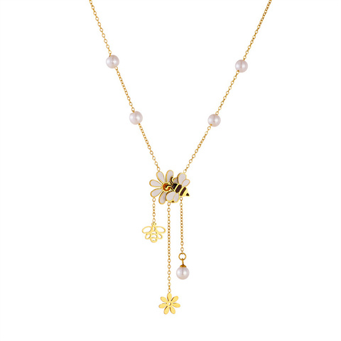 Versátil caja chapada en oro de acero inoxidable colgante de cadena Simple suave joyería de mujer perla flor abeja princesa corte niños