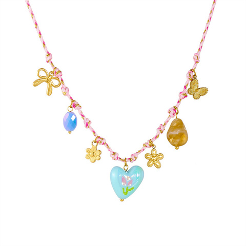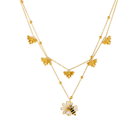 Versátil collar con colgante de acero inoxidable chapado en oro Popular dulce creativo abeja mariposa diseño para mujeres niños circón