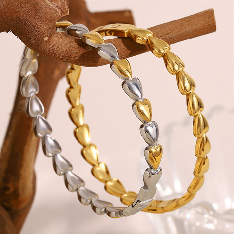 Pulsera con hebilla de corazón de oro de 18 quilates personalizada, pulsera minimalista versátil de acero inoxidable, brazaletes de moda