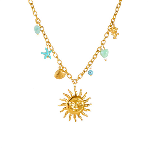Collar con colgante de acero inoxidable elegante para mujer, a la moda chapado en oro, estrella de girasol, corazón, Concha, circón principal