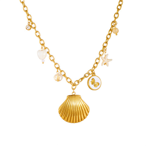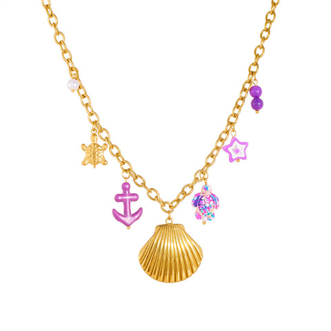 Versátil collar con colgante de acero inoxidable para mujer, moda Popular, gran Vieira, estrella de mar, Concha, dulce estilo oceánico, colorido